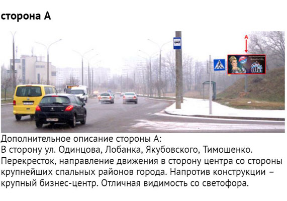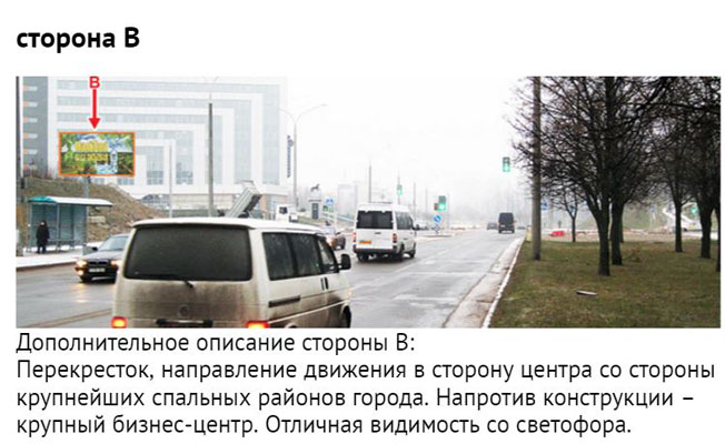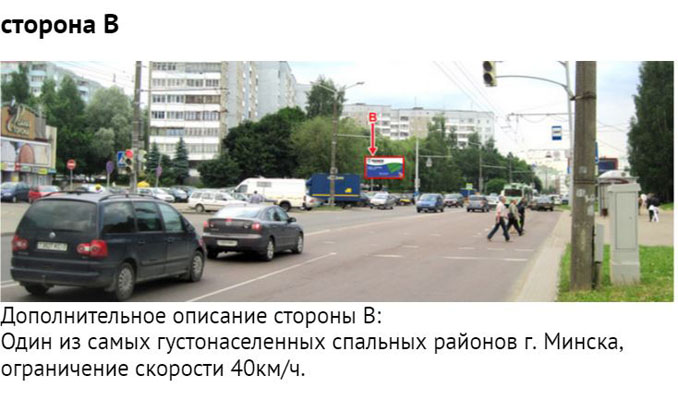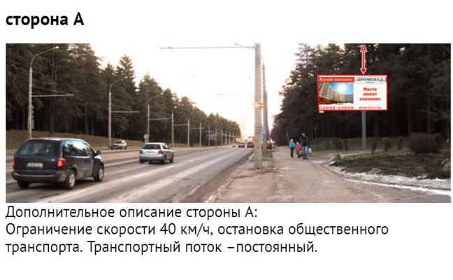 Размещение и прокат рекламы в Минске Билборды 1 2 3 4 5 6 7 8 9 10 Медиатабло Кинотеатры Страница 2 из 14 Размещение рекламы на билбордах города Минска Category Title b1702-Минск, пр. Партизанский, 12 - ул. О. Кошевого (сторона В) b1701-Минск, пр. Партизанский, 12 - ул. О. Кошевого (сторона А) b1703-Минск, пр. Пушкина - ул. Дунина - Марцинкевича,10 b1704-Минск, Бурдейного ул., в районе д. 10 b1705-Минск, Ваупшасова ул., д.42 (сторона А) b1706-Минск, Ваупшасова ул., д.42 (сторона В) b1707-Минск, Долгиновский тракт (напротив ТЦ ALL) (сторона А) b1708-Минск, Долгиновский тракт (напротив ТЦ ALL) (сторона В) b1706-Минск, Ваупшасова ул., д.42 (сторона В) Category Title b1710-Минск, Долгиновский тракт - Старовиленский тракт (остановка) (сторона А) b1711-Минск, Долгиновский тракт - Старовиленский тракт (остановка) (сторона В) b1712-Минск, Долгиновский тракт - ул. Будславская (сторона А) b1713-Минск, Долгиновский тракт - ул. Будславская (сторона В) b1714-Минск, Долгобродская ул., в районе дома №44 (сторона А) b1715-Минск, Долгобродская ул., в районе дома №44 (сторона В) b1716-Минск, Игуменский тракт - ул. Лучины, 22 (сторона А1) b1717-Минск, Игуменский тракт - ул. Лучины, 22 (сторона А2) b1718-Минск, Игуменский тракт - ул. Шпилевского (сторона А) b1719-Минск, Игуменский тракт - ул. Шпилевского (сторона В) b1720-Минск, Игуменский тракт - ул. Шпилевского (55) (сторона А) b1721-Минск, Игуменский тракт - ул. Шпилевского (55) (сторона В) b1722-Минск, Кедышко ул., на пересечении с ул. Славинского (дом №37) b1723-Минск, Кольцова ул., 38 (сторона А) b1724-Минск, Кольцова ул., 38 (сторона В) b1725-Минск, Л. Беды ул. дом №31 (сторона А) b1726-Минск, Л. Беды ул. дом №31 (сторона В) b1727-Минск, Лейтенанта Кижеватова ул., д. 7, корпус 2 (Б) b1728-Минск, Лобанка ул. - Мазурова ул. (сторона А) b1729-Минск, Лобанка ул. - Мазурова ул. (сторона В) b1730-Минск, МКАД - пр. Независимости (за бизнес-центром 21 век) (сторона А) b1731-Минск, МКАД - пр. Независимости (за бизнес-центром 21 век) (сторона В) b1732-Минск, МКАД - ул. Скорины (рядом с проездом под МКАД) (сторона А) b1733-Минск, МКАД - ул. Скорины (рядом с проездом под МКАД) (сторона В) b1734-Минск, Независимости пр., 79 b1735-Минск, Одинцова ул. дом №18-1 (сторона А) b1736-Минск, Одинцова ул. дом №18-1 (сторона В) b1737-Минск, Одоевского ул., на пересечении с ул. Бельского b1738-Минск, Одоевского ул., на пересечении с ул. Е. Полоцкой (сторона А) b1739-Минск, Одоевского ул., на пересечении с ул. Е. Полоцкой (сторона В) Category Title b1740-Минск, Одоевского ул., на пересечении с ул. Кириенко (сторона А) b1741-Минск, Одоевского ул., на пересечении с ул. Кириенко (сторона В) b1742-Минск, Партизанский проспект (выезд с АЗС «Белоруснефть») (сторона А, А1) b1743-Минск, Партизанский проспект (выезд с АЗС «Белоруснефть») (сторона В, В1) b1744-Минск, Партизанский проспект (д. № 2 по ул. Молодежная) (сторона А1, А2) b1745-Минск, Партизанский проспект (д. № 2 по ул. Молодежная) (сторона В1, В2) b1746-Минск, Партизанский проспект (напротив дома № 174 к. 2) (сторона А1, А2) b1747-Минск, Партизанский проспект (напротив дома № 174 к. 2) (сторона В1, В2) b1748-Минск, пер. 1-й Загородный - съезд с ул. Кальварийской (сторона А) b1749-Минск, пер. 1-й Загородный - съезд с ул. Кальварийской (сторона В) b1750-Минск, пер. 2-ой Багратиона,17 b1751-Минск, пер. Промышленный,7 b1752-Минск, пл. Бангалор b1753-Минск, пл. Ванеева b1753-Минск, пл. Ванеева b1755-Минск, площадь Запорожская - ул. Столетова b1756-Минск, Пономаренко ул. дом №1 (сторона А) b1757-Минск, Пономаренко ул. дом №1 (сторона В) b1758-Минск, пр-т Партизанский, 49 – ул. Буденного b1759-Минск, пр. Газеты b1760-Минск, пр. Газеты b1761-Минск, 